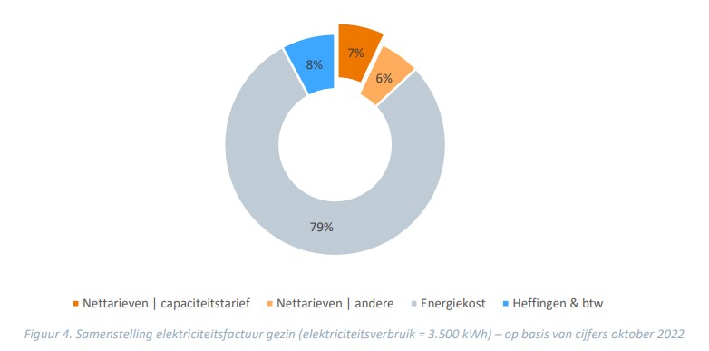 1. een deel van de nettarieven met het nieuwe capaciteitstarief (in kW) en nog maar een deel op basis van verbruik (in kWh);